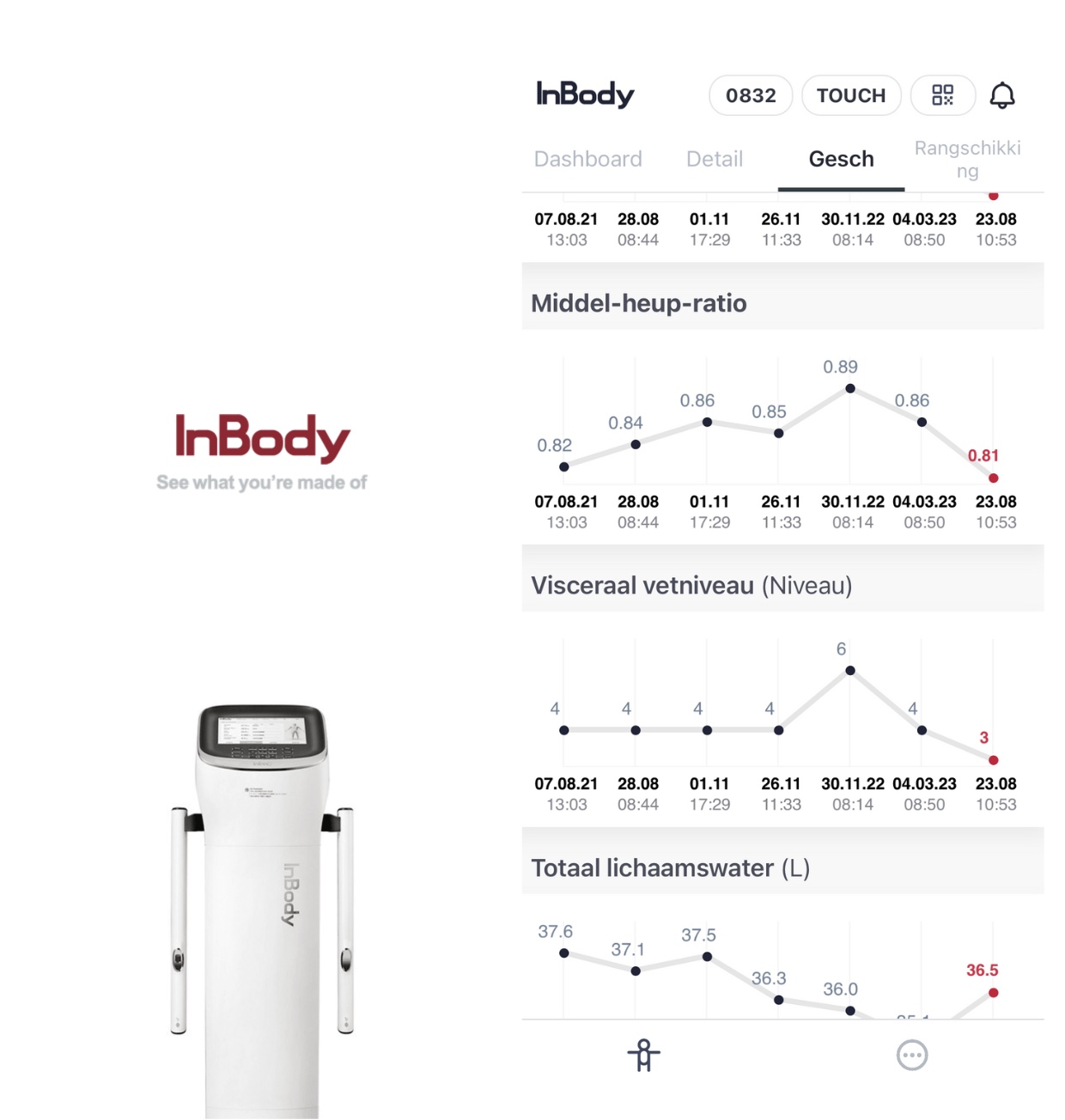 Het voordeel van de InBody-scan is de directe en nauwkeurige resultaten die het biedt. Bovendien kun je hiermee de veranderingen in de samenstelling van het lichaam volgen in de loop van de tijd: zo kun je steeds in de gaten houden of je richting een gezond vetpercentage beweegt.